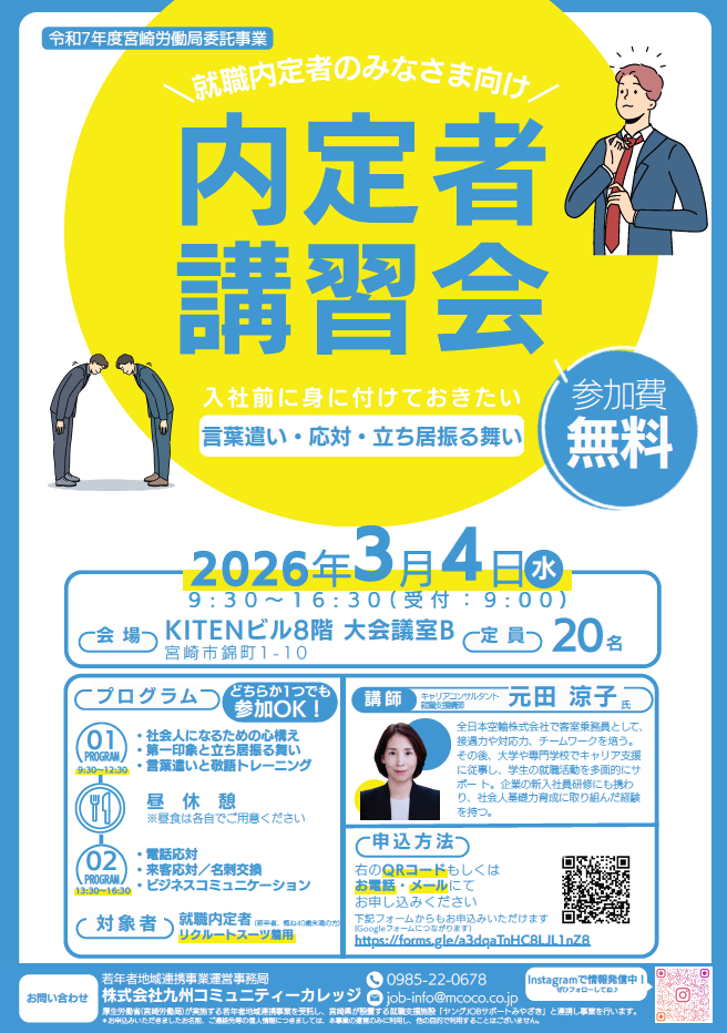 「内定者講習会」(宮崎会場)参加者募集中です!!!