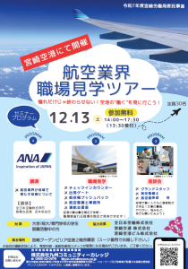 航空業界に興味がある方必見!宮崎空港全面協力のもと、空港の舞台裏を見学&仕事体験できる特別イベント開催。現役スタッフの話が聞ける交流会もあり、業界理解が深まりますよ!